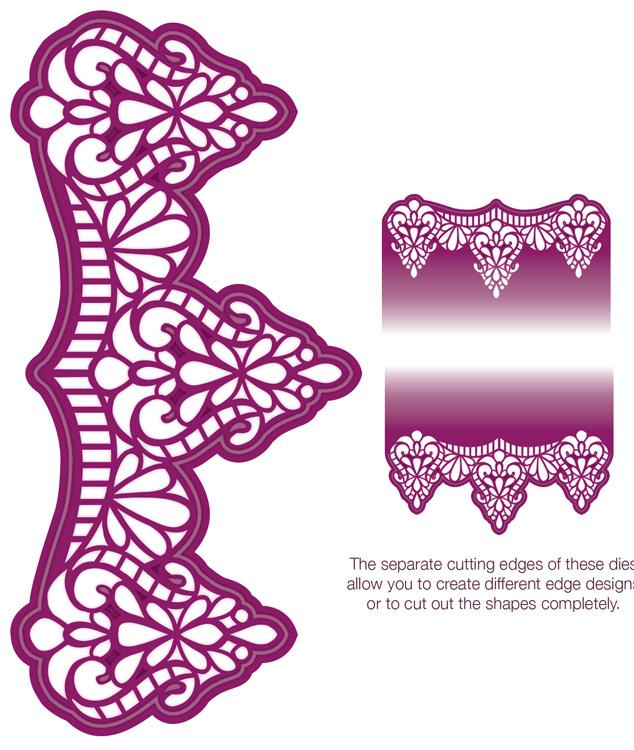 The separate cutting edges of these dies allow you to create different edge designs or to cut out the shapes completely.
