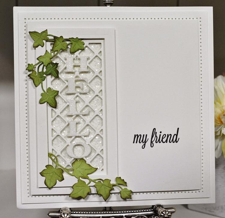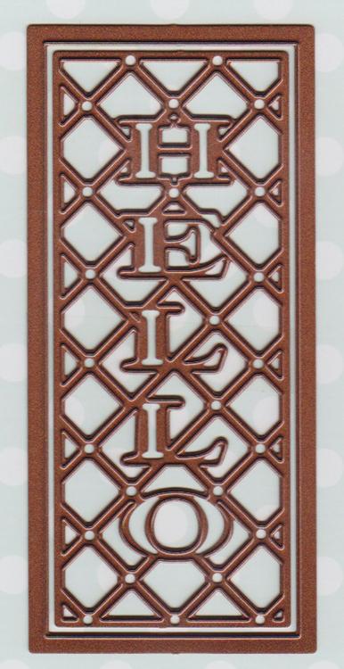 Vertical in its design, the Hello Die is lovely with a lattice detail to the background. It is in two separate dies so may be cut out of your card or cut out completely for different looks, depending on your needs.
