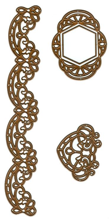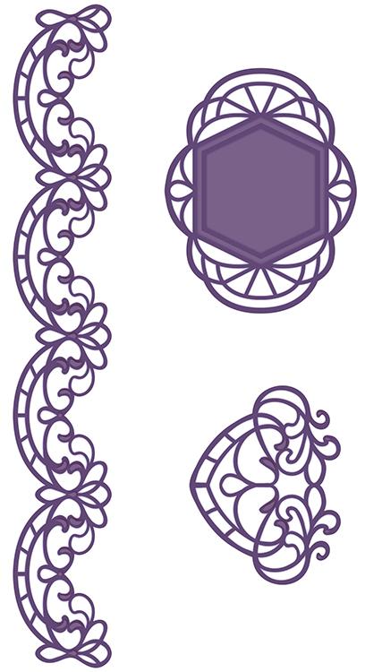 The Portuguese dies all come with separate cutting edges and decorative inserts. The centre designs in each shape have been paired up to give you beautiful matting and layering capabilities, while the outside shaped design is quite different.