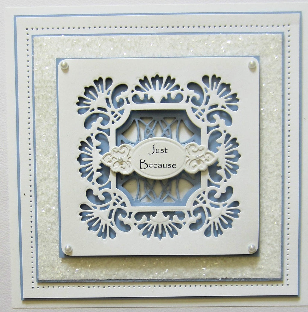 Just using the decorative cutting dies as layered apertures, this die set is beautiful in it's floral design.  You will reach for it time and time again.
