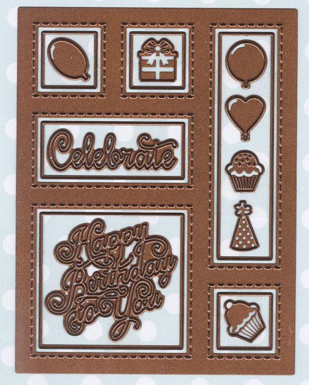 The Birthday Shadow Box has stitching around all the openings. The base templates are not the same for all the Shadow Boxes, however, the shapes within the sets are so that means you can mix and match the items from any of the sets if you want!