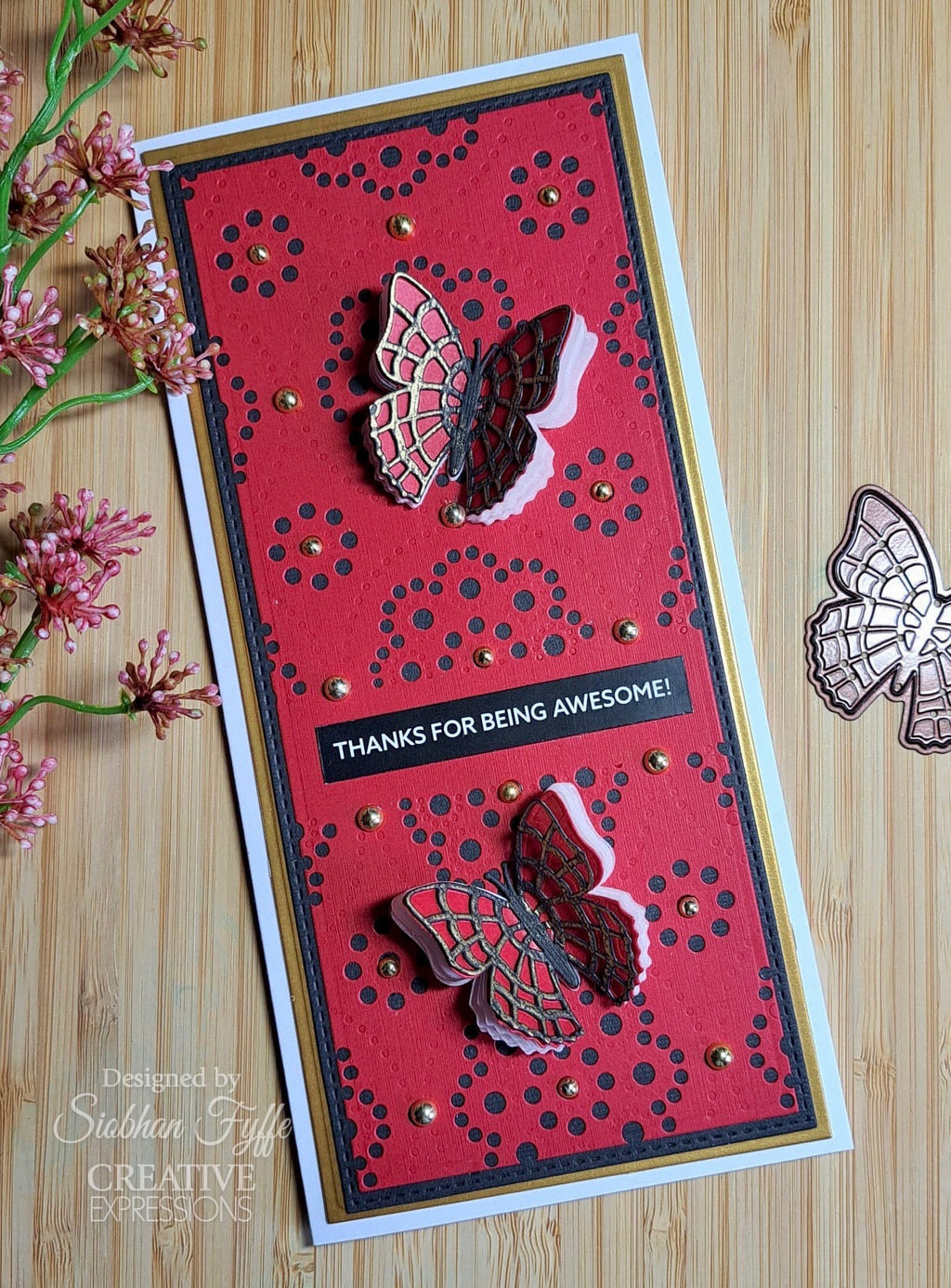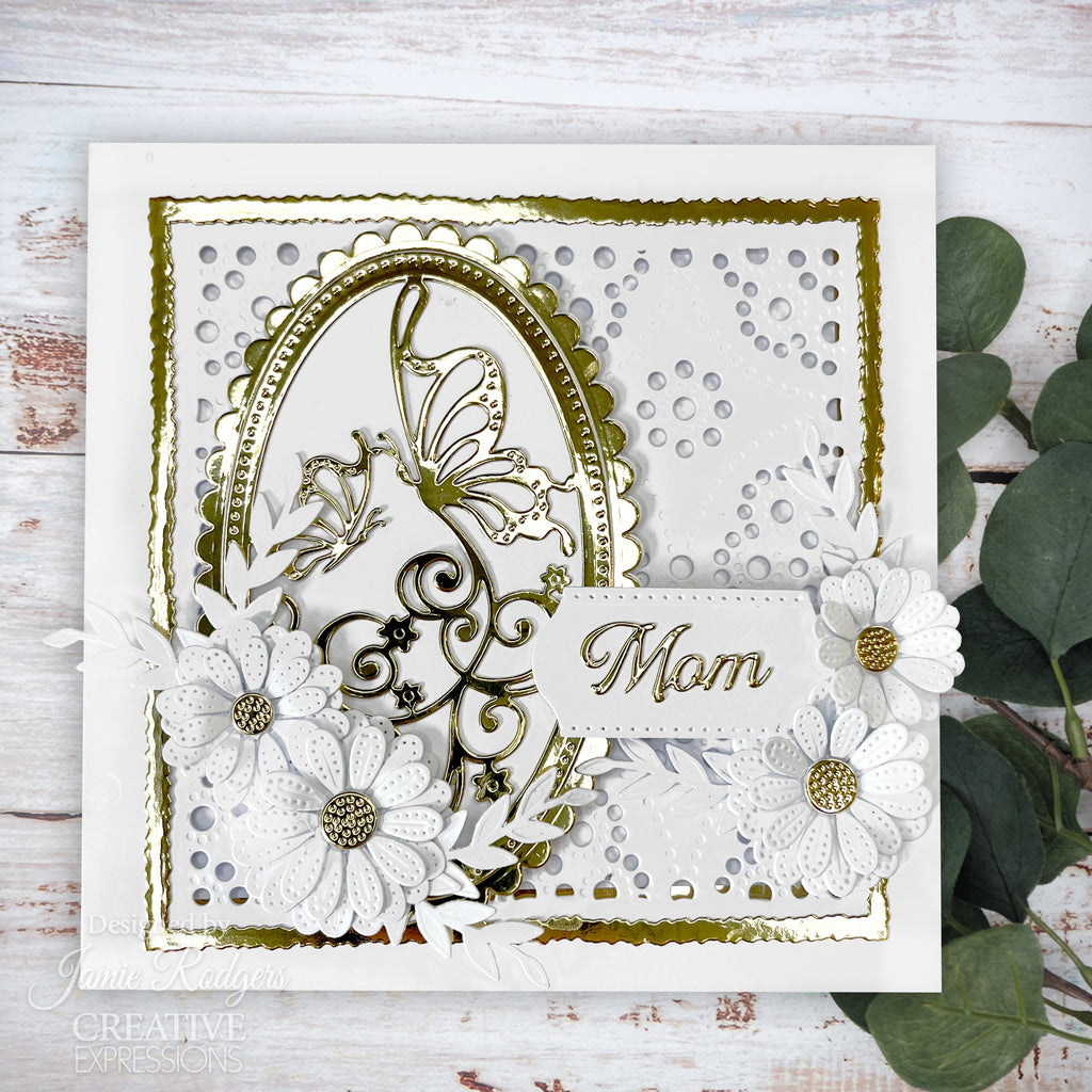 This large, pierced background die designed by Jamie will make a great card front with the intricate patterns of the elegant mandala. The dies are compatible with most home die cutting machines. Made in China. Don’t forget to check out the Creative Expressions YouTube Channel for inspiration and tips. Two die set. Largest die 12.0 x 12.0 cm (4.7 x 4.7 inches), smallest die 11.2 x 11.2 cm (4.4 x 4.4 inches).
