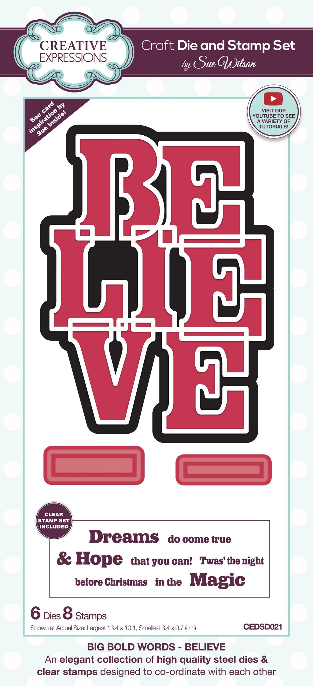 Creative Expressions Sue Wilson Big Bold Words Believe Craft Die & Stamp Set
