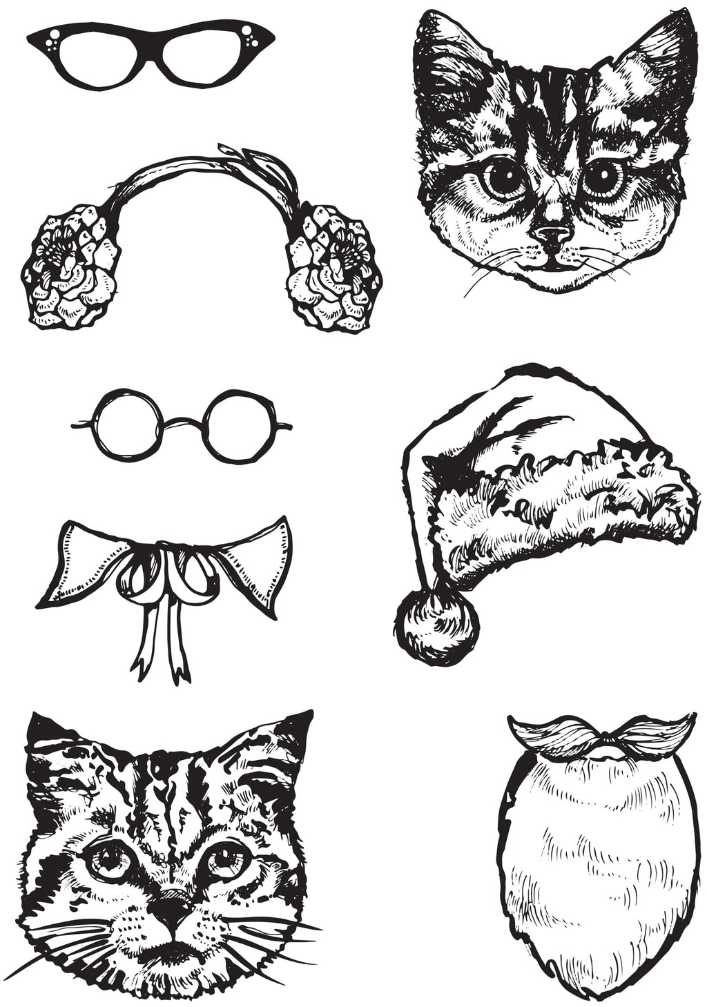 In Jane's signature style this Kitty Christmas stamp set is a fun take on Christmas. Stamp and add colour with your favourite medium, perfect for cards, journals, scrapbook pages, or other craft projects. Ready to mount on an acrylic block the stamp can be used with ink pads, paint, or used with pigment ink and embossing powder. They are suitable for paper, fabric, or any other surface depending on the ink choice. High quality photopolymer stamps made in the UK. Carefully remove the stamps from the carrier sheet and they are ready to use. Made in the UK. 8 stamps. Size 15.2 x 20.3 cm (6 in x 8 in).