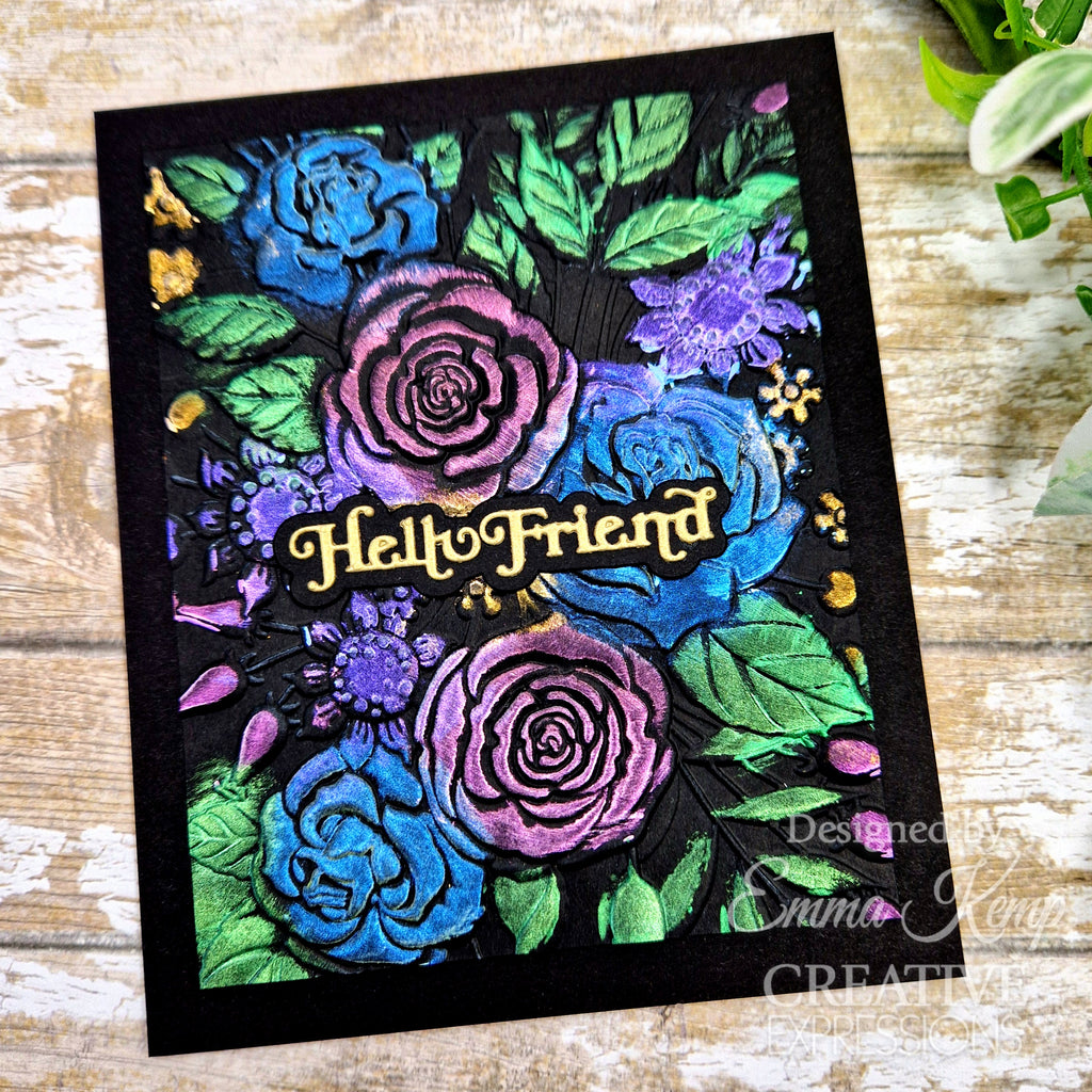 Enhance your Rose Garden 3D Embossing Folder with vibrant colours using this convenient companion colouring stencil set. Simply emboss your design then align the stencils over the embossed image and colour with your favourite colouring mediums! Whether you prefer Cosmic Shimmer polishes, inks, paints, misters, pastes, glitter, or more, this stencil is perfect for your creative needs. It's ideal for various paper crafting projects, including cardmaking, scrapbooking, and more. Crafted from durable 350-micron mylar, this stencil is built to last. It is resistant to solvents and easy to clean, ensuring its longevity and usability. Made In UK. 2 stencils. Size 6 in x 8 in (15.2 cm x 20.3 cm).