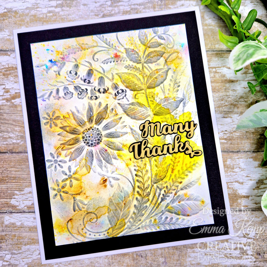 Enhance your Sunshine Serenade 3D Embossing Folder with vibrant colours using this convenient companion colouring stencil set. Simply emboss your design then align the stencils over the embossed image and colour with your favourite colouring mediums! Whether you prefer Cosmic Shimmer polishes, inks, paints, misters, pastes, glitter, or more, this stencil is perfect for your creative needs. It's ideal for various paper crafting projects, including cardmaking, scrapbooking, and more. Crafted from durable 350-micron mylar, this stencil is built to last. It is resistant to solvents and easy to clean, ensuring its longevity and usability. Made In UK. 2 stencils. Size 6 in x 8 in (15.2 cm x 20.3 cm).