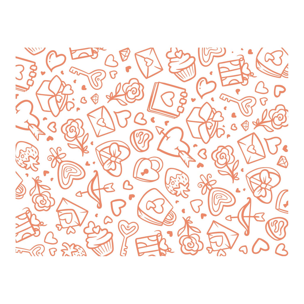 Great mixed media background stamp set featuring various heart themed elements perfect for Valentine's Day. This stamp set would be perfect for cards and scrapbook pages as well as mixed media. Create unique stamped designs every time!