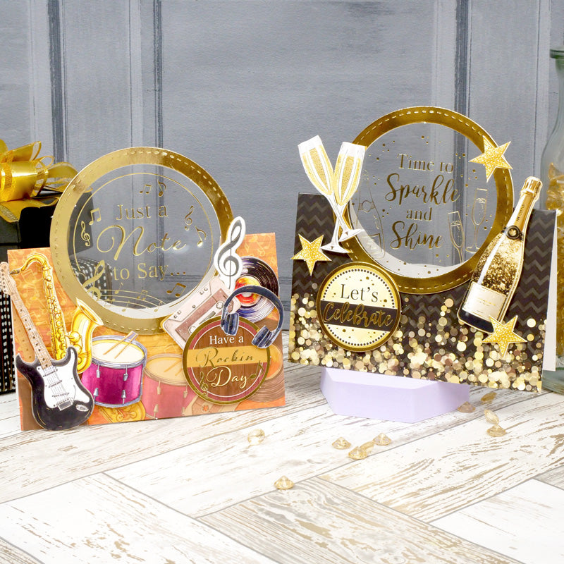 There are 6 different stunning designs within this Concept Card Kit, featuring rockin’ musical instruments, colourful balloons, radiant roses, sparkling champagne, perfect presents and beautiful butterflies. Rich gold foil has been used throughout to create a lovely luxurious finish.