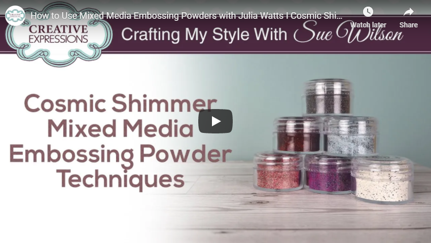 Cosmic Shimmer Mixed Media Embossing Powders include larger flakes and metallic elements to give a greater variance in colour than a normal embossing powder - perfect for mixed media projects to give a unique mottled finish.