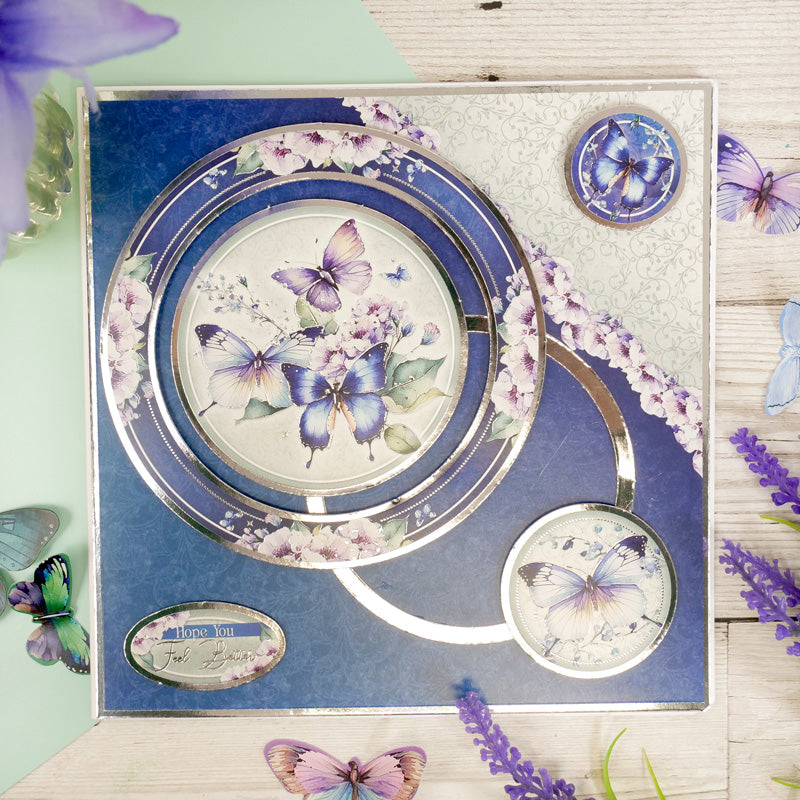 The Butterfly Dance Deluxe Craft Pad is the ideal solution for pretty everyday, all year round crafting. Featuring stunning silver foiling throughout, this pad contains page after page of beautiful elements that can be used to make cards for a wide range of recipients and occasions. Printed on their versatile Adorable Scorable cardstock, throughout the pad you will find butterflies and florals in rich amethyst, sapphire and emerald colours. Beautiful watercolour butterfly arrangements set alongside pretty floral patterns that are sure to help any crafter create the most stunning cards.