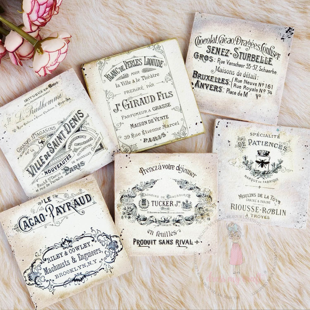 These transfers can be used on wood, plastic, glass, leather, metal, painted surfaces, marble and resin.