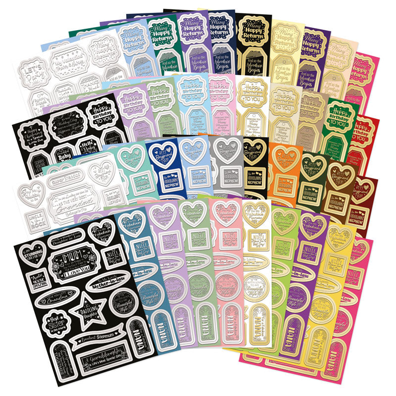 7" x 5" pad containing 40 x 350gsm Adorable Scorable foiled & die-cut sentiments sheets