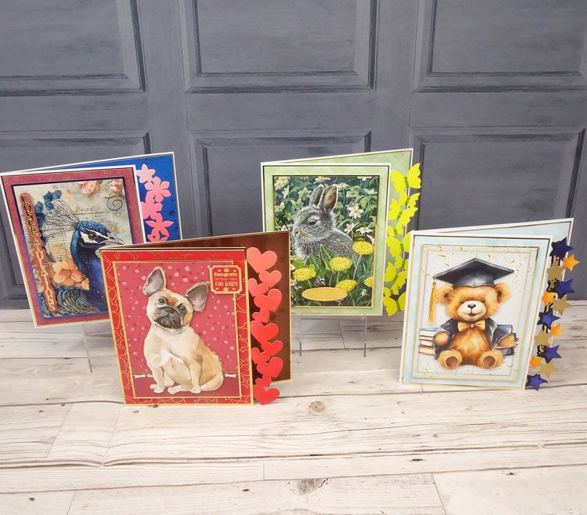 An essential for any crafter; these card blanks are cut from the amazing 300gsm Ink Me! cardstock, perfect for stamping, spritzing, inking, colouring and plenty of other crafty techniques. They are all pre-scored for ease of use, ready to be decorated however you desire. The front panel is the ideal dimensions for one of the fan-favourite Little Book pages as well as being the perfect base for toppers, photographs and endless crafty items in your stash. With multiples of each design, you can get really creative and tailor the shaped cards to the recipient, who will have never received a handmade card quite like these!
