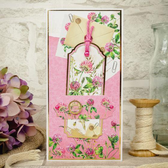 Delicate floral arrangements of Cornflower, Daisy, Forget-me-not, Milk Thistle, Anemone, Clover, Yarrow, Honeysuckle and Dandelion flowers capture the untamed natural beauty of wildflowers. Craft without restraint with an abundance of rich gold foiled framed toppers, borders, sentiments, strips and other elements to play with.