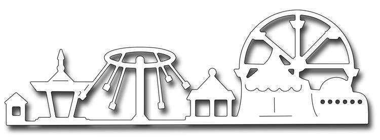 The fun Carnival Skyline die measures 5.5" x 1.75". It's flexible enough to curve along gentle curves for a "hilly" look, and it's a great backdrop for a large carousel horse, or other carnival themed scene.