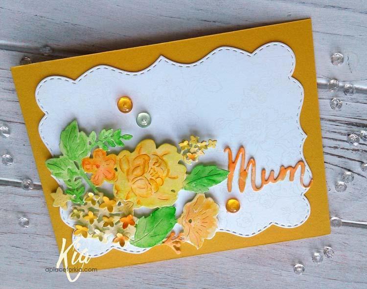 The Botanical Spray die measures 2.5" x 3.5" creating a nice sized focal point for a cheery and bright card.