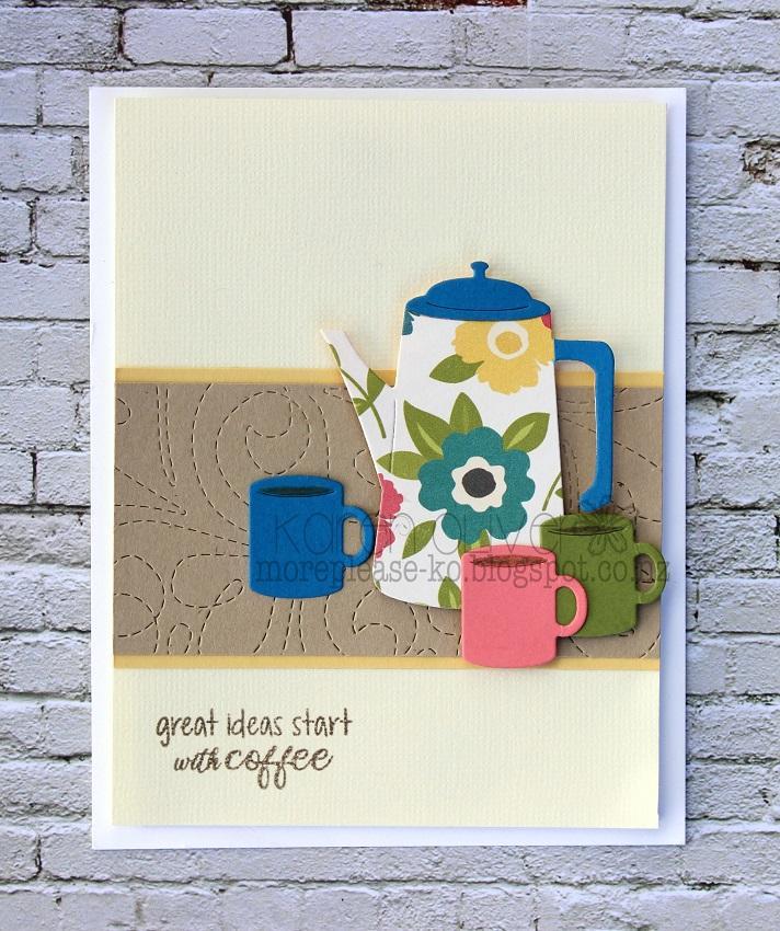 The Percolator die set includes an old fashioned coffee pot measuring 2.125" x 2.5", and a simple cup measuring 0.875" x 0.875". The two make a perfect match for any coffee themed card!