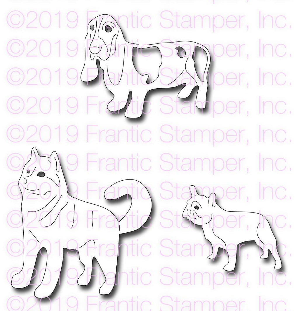 Three more doggies for you! This set contains 3 detailed dog dies in larger sizes than our Dog Silhouetttes die set.