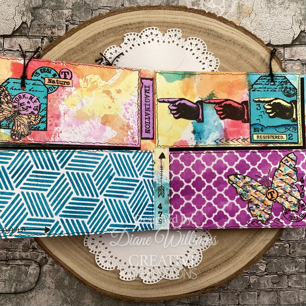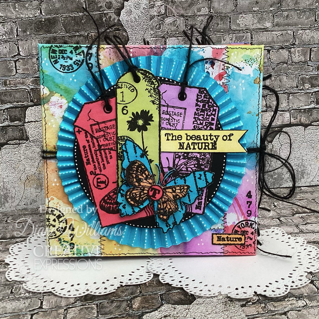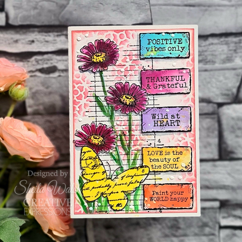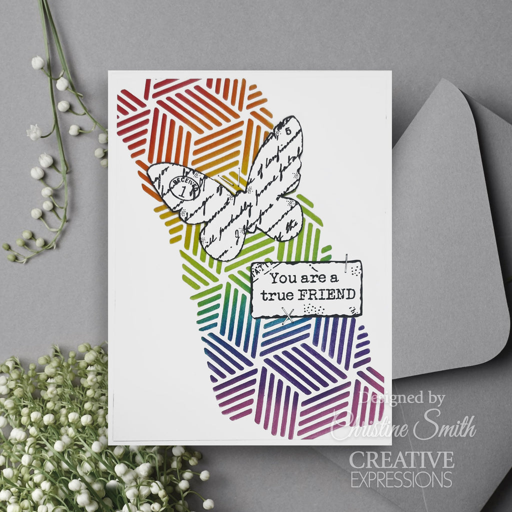 This Torn Paper Butterflies clear stamp set in Francoise's vintage grunge style is perfect to colour with your favourite medium. Designed by Francoise Read this stamp set would be perfect for cards and scrapbook pages as well as mixed media or décor projects. Ready to mount on an acrylic block the stamp can be used with ink pads, paint, or used with pigment ink and embossing powder. They are suitable for use on paper, fabric, or any other surface depending on the ink choice. Clean your stamps with a wipe, damp cloth or under warm running water depending on the medium you use. Made In UK. 5 stamps. Size 3 in x 4 in (7.6 in x 10.2 in).