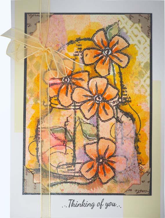 This clear stamp set designed by Francoise Read produces a sketch style bunch of daisies in a small jar with the sentiments "Enjoy your day", "Thinking of you", and "Thank you". Size: 3.75 x 5.25 inches.