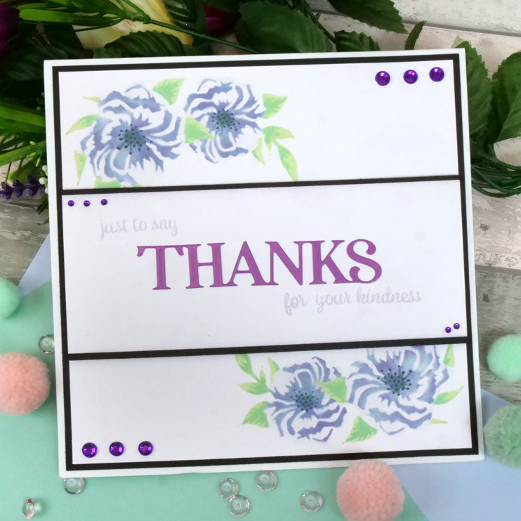 For the Love of Masks - Layering Bee & Florals includes four 5” x 5” masks, each labelled for ease with A, B, C and D, whilst two corners have small diamonds to use for easy alignment. Ink through each mask using the guide included and the suggested Prism Ink Pad colours to create a wonderful centrepiece of three flowers, leaves and a bee in flight. Once complete, pair with your favourite sentiment and mat upon a cardblank.