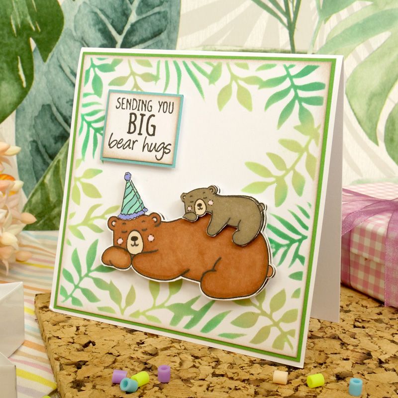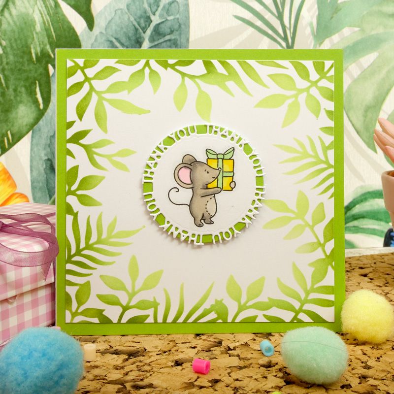 Create cute jungle and leafy-themed cards with the For the Love of Masks - Luscious Leaves Frame 5” x 5” mask.