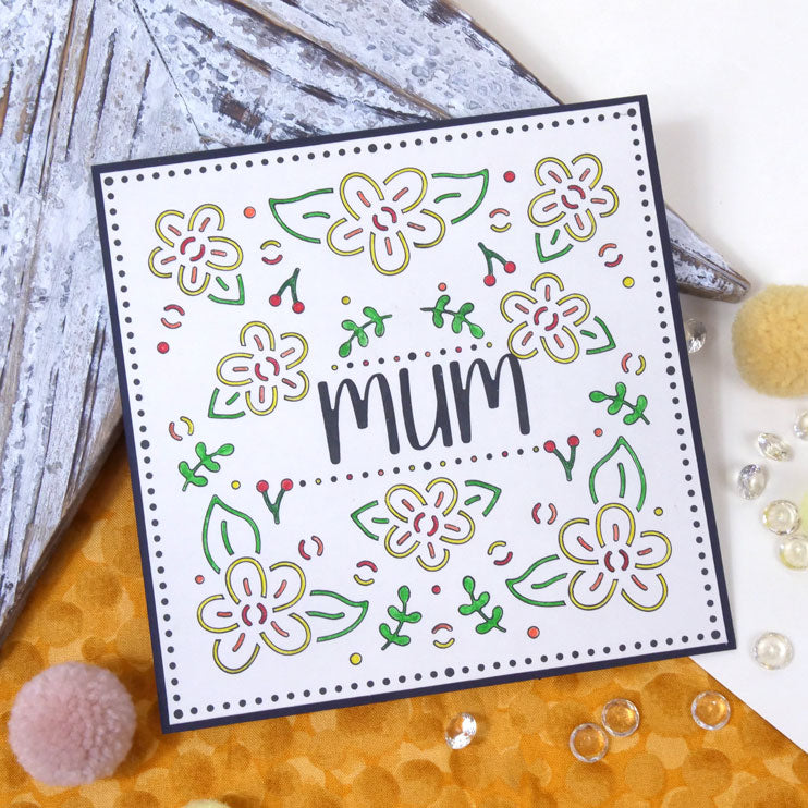 The Bumblebee 6” x 6” centrepiece mask includes a large bee surrounded by florals, foliage and stylised details along with a dotty border. Ink through the mask using Prism Ink Pads for an instant card front or ink through sections for individual embellishments. Ink multiple, trim and layer for added dimension and use different finishing techniques such as embossing powders, Glimmer Mists and more! Why not use Prism Brush Markers and draw through the sections using the fine liner, allowing you to colour each individual section in multiple colours with ease.