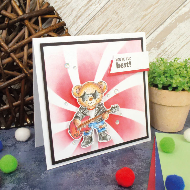 To complement the Teddy Time Crafty Stash Pad included with Issue 83 of the Crafting with Hunkydory Magazine, this For the Love of Stamps - Teddy Time A6 stamp set includes a collection of bears for every occasion and recipient, including business bear, football bear, DIY bear, rockstar bear and more. This set also includes a variety bear themed sentiments. Suitable for all ages this set is an especially handy go-to for those cards aimed at men.