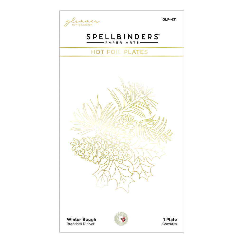 Winter Bough Hot Foil Plate is from the Snow Garden Collection by Susan Tierney-Cockburn and features a large sprig of pine leaves, pinecones and holly. Perfect for both a seasonal background or a cardfront feature, this versatile plate will be one you reach for again and again! It is the perfect size for fitting a standard A2 size card front with ease. Combine it with the other elements in The Snow Garden Collection to create stunning three-dimensional projects.