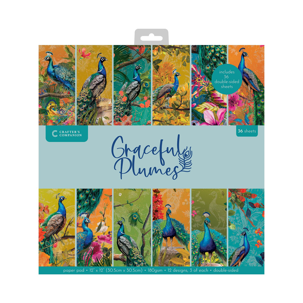 Create colourful invitations, fun cards, and more with the Graceful Plumes 12″ x 12″ Paper Pad by Crafter’s Companion.