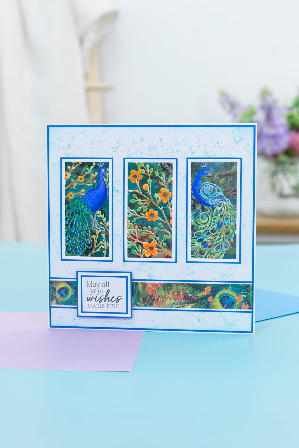 Show off your creativity like a peacock proud of its feathers with the Graceful Plumes collection by Crafter’s Companion. This range features entrancing paper pads and linen card packs adorned with peacocks and florals on bright, colourful backgrounds, with intricately designed stamps and dies for your next proud and elegant crafts and projects.