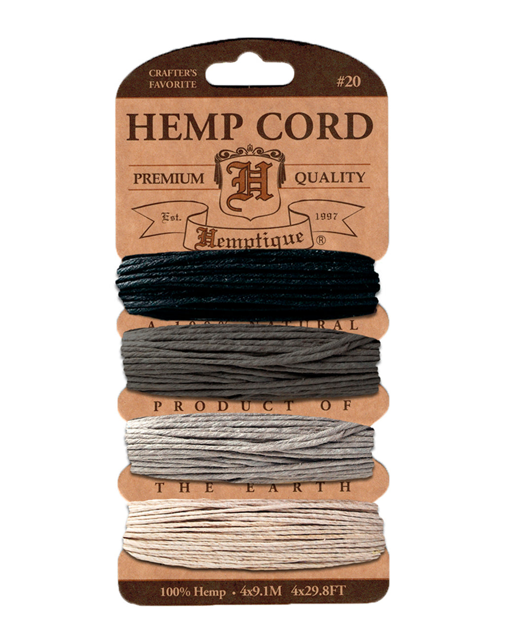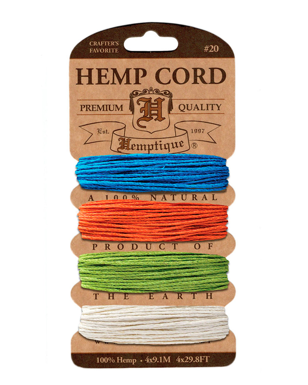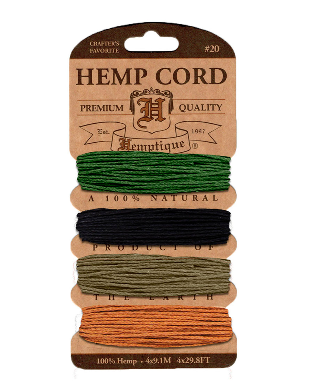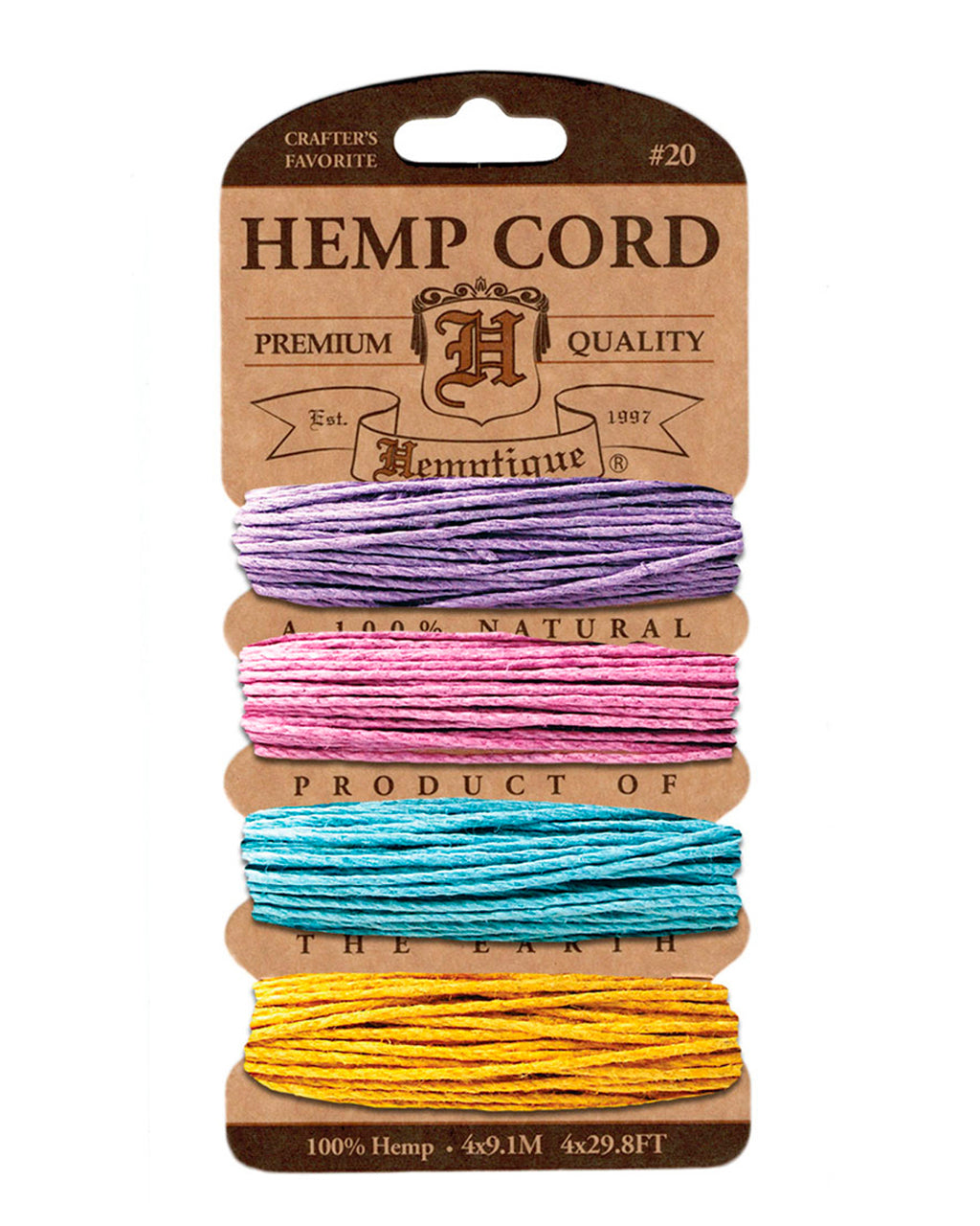 Each card comes with 4 coordinated colors of hemp cord that are approximately 29 feet each. These Hemp Cord Cards are perfect for any small to medium crafting project. Hemptique’s hemp cord is polished to eliminate stray fibers, maintain strand consistency, and enhance the brilliant colors of the product. Hemptique's Eco-Friendly and multipurpose Hemp Cord can be used in many exciting ways. These cards have been curated with fun colors and amazing color palettes. Durable and strong to use for macramé, woven bracelets, necklace cords, card making, hang tags, or gifting, and much more!