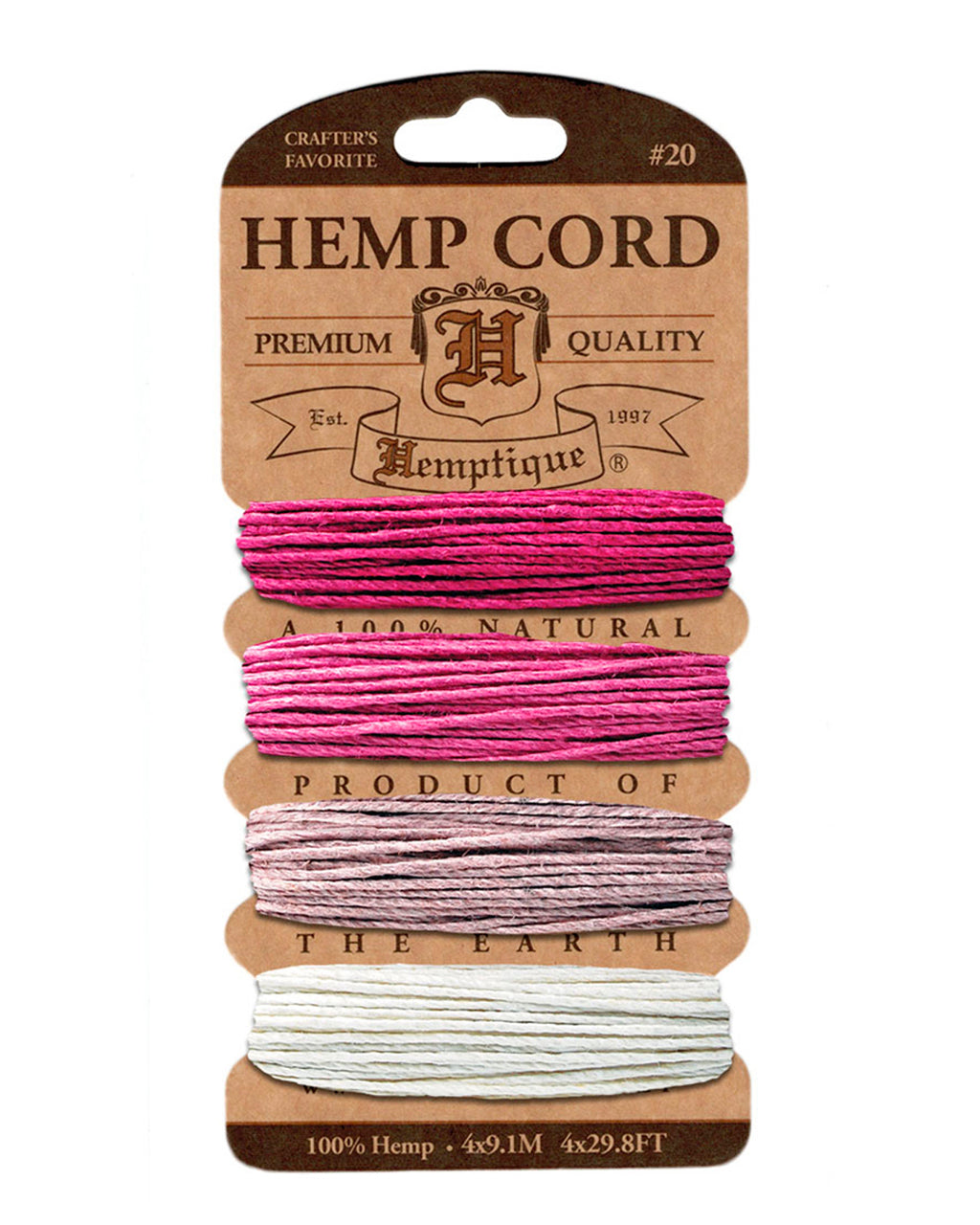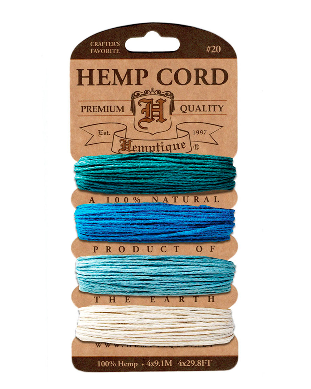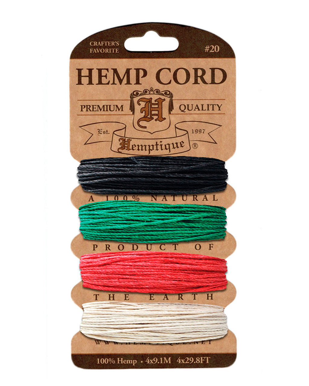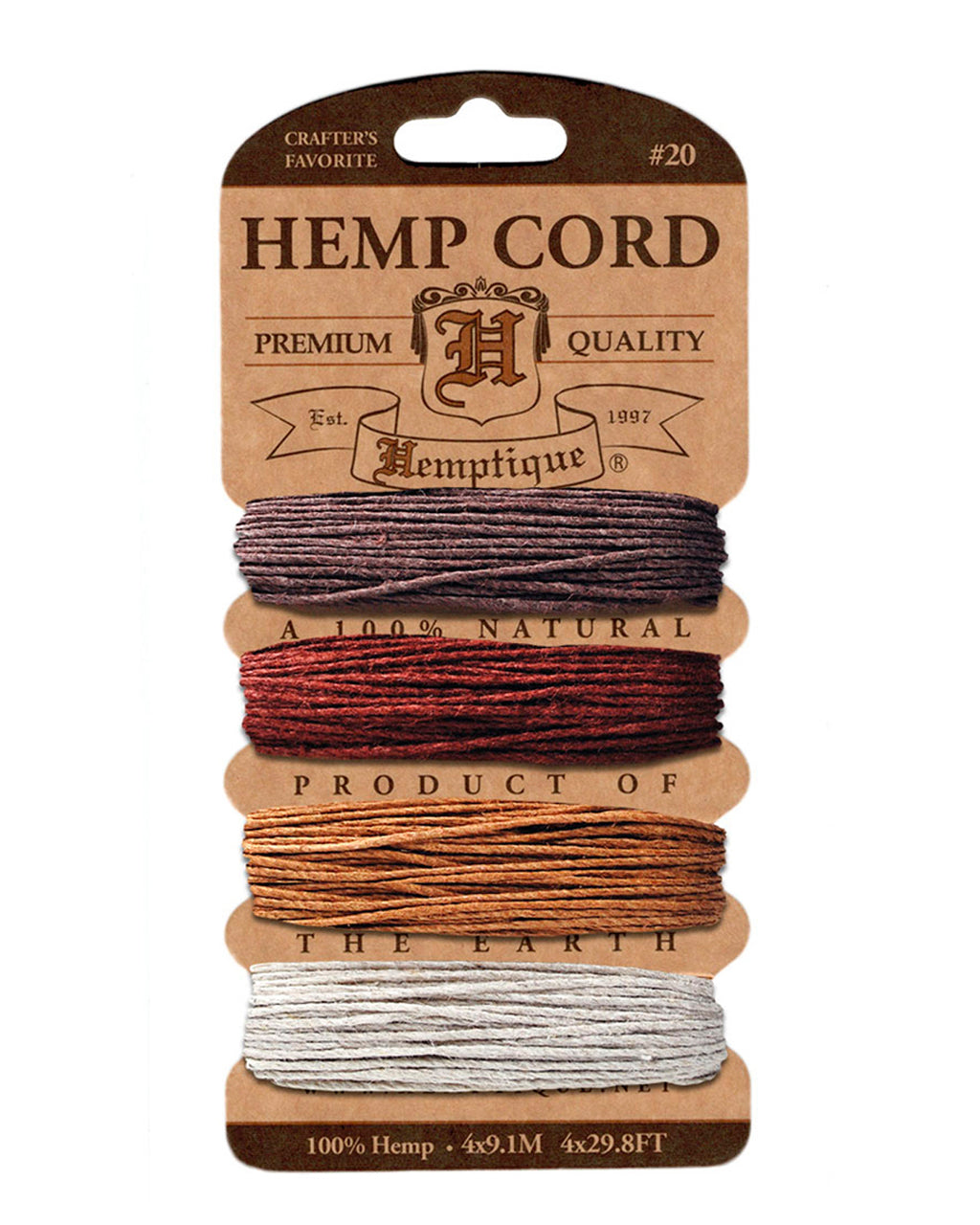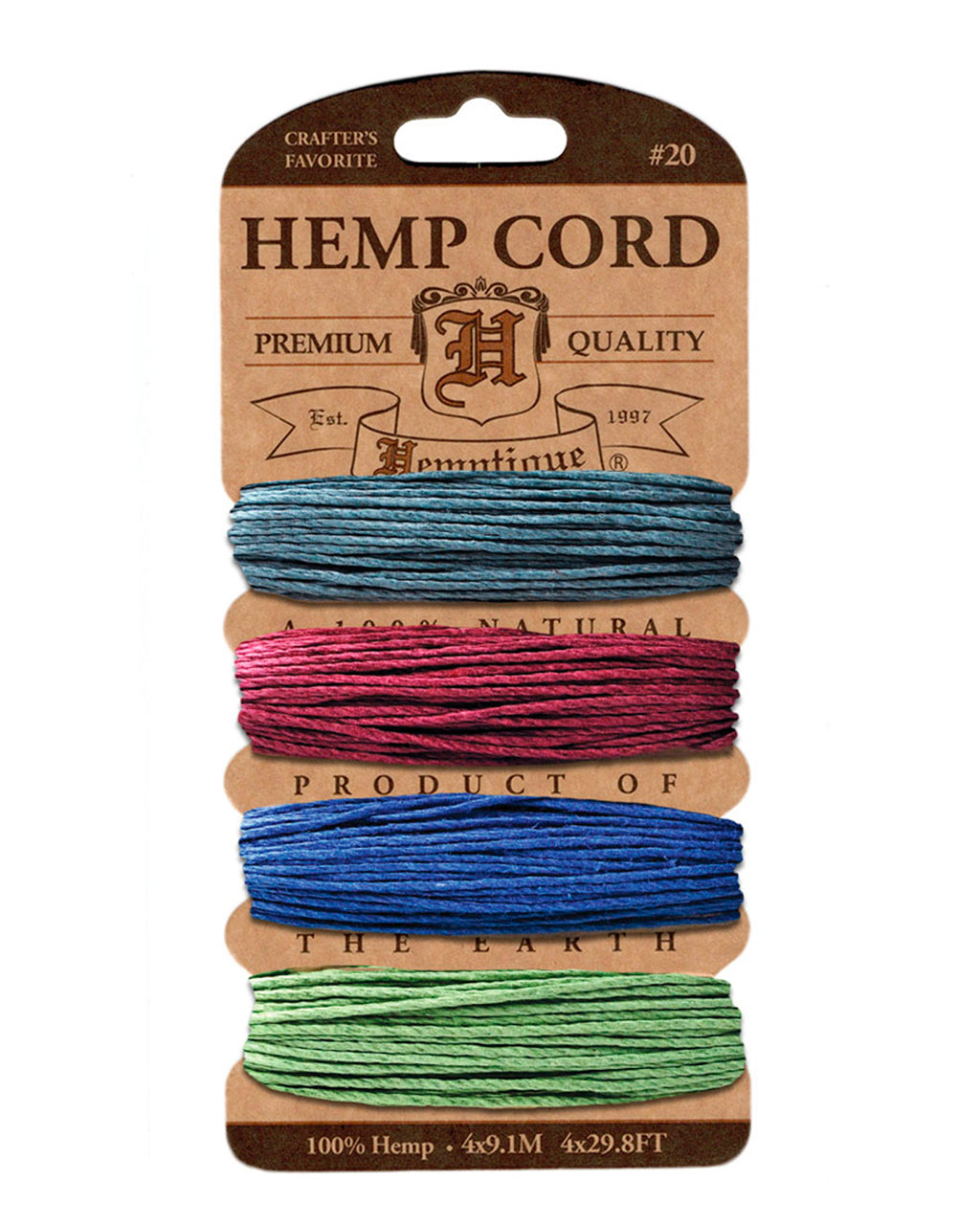 Each card comes with 4 coordinated colors of hemp cord that are approximately 29 feet each. These Hemp Cord Cards are perfect for any small to medium crafting project. Hemptique’s hemp cord is polished to eliminate stray fibers, maintain strand consistency, and enhance the brilliant colors of the product. Hemptique's Eco-Friendly and multipurpose Hemp Cord can be used in many exciting ways. These cards have been curated with fun colors and amazing color palettes. Durable and strong to use for macramé, woven bracelets, necklace cords, card making, hang tags, or gifting, and much more!