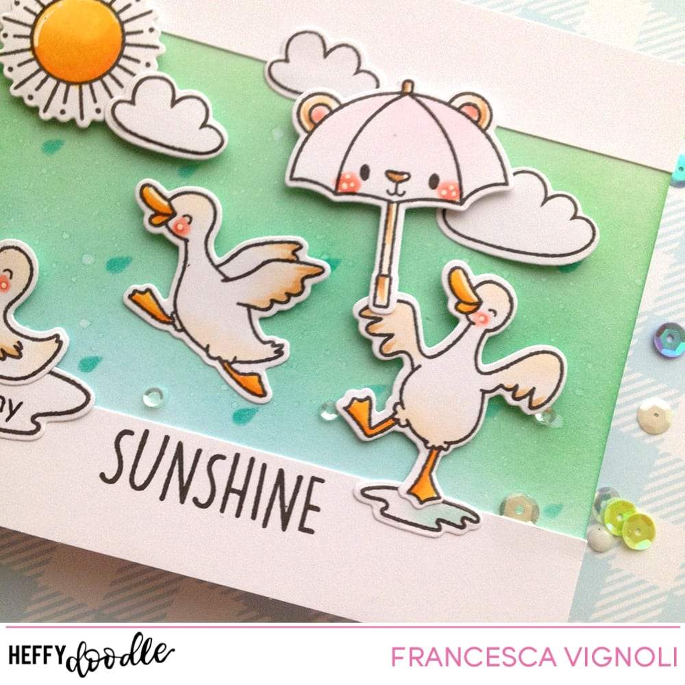 A set of 14 dies to coordinate with the Quack Me Up stamp set (HFD0181). The dies included are for the four duck images, sunshine, umbrella, two clouds, two puddles, raindrop and splash images. Also includes a stand alone die to create your own water droplet holes in your background.