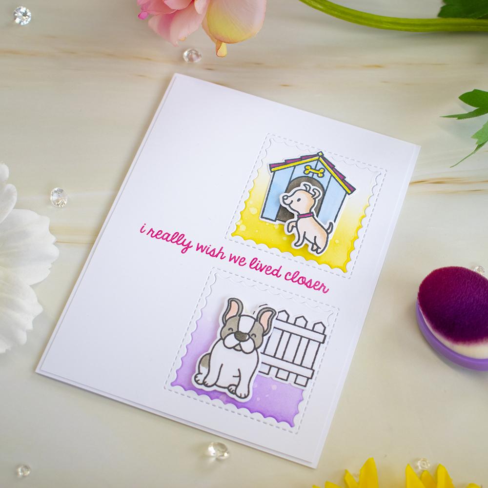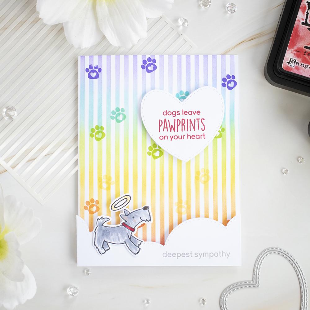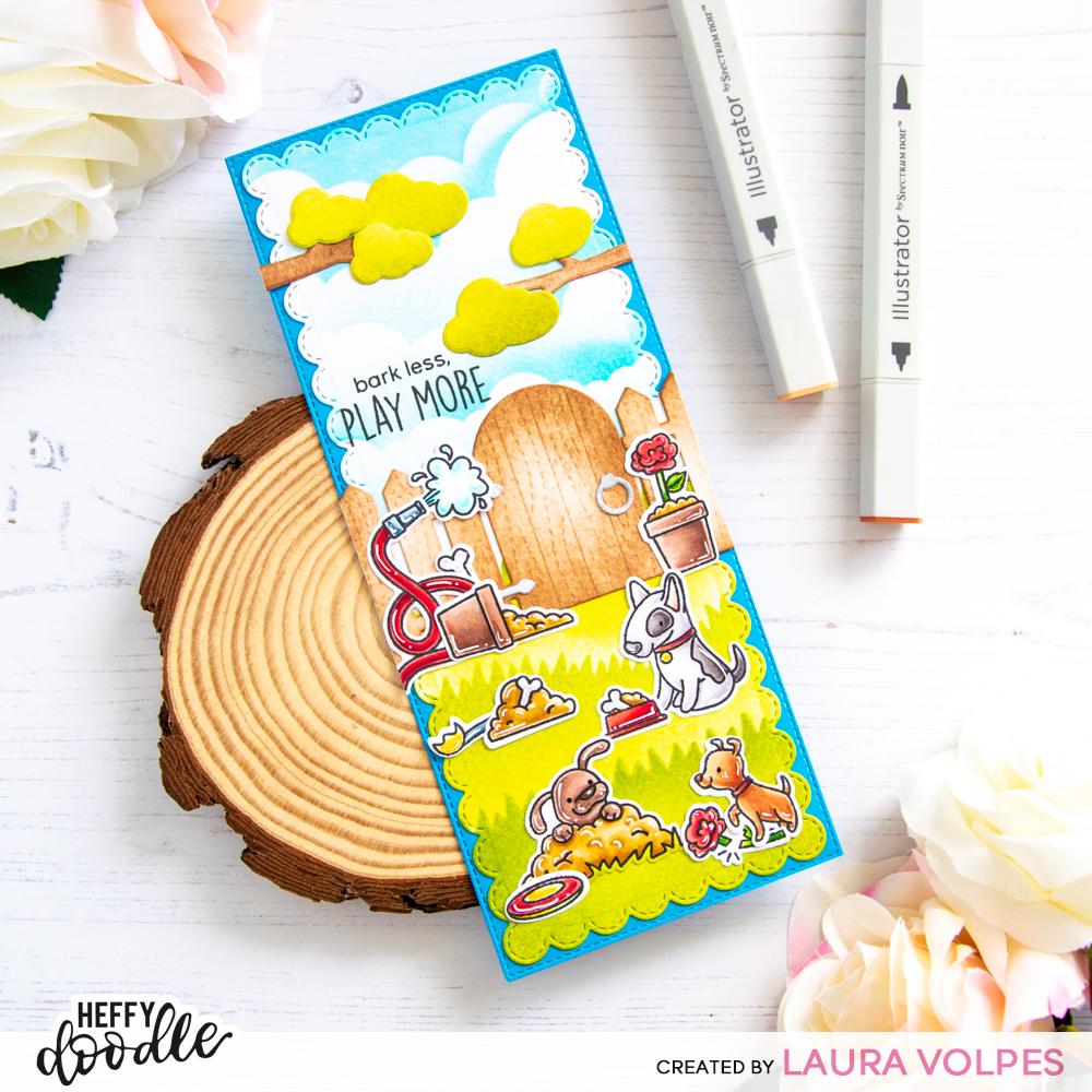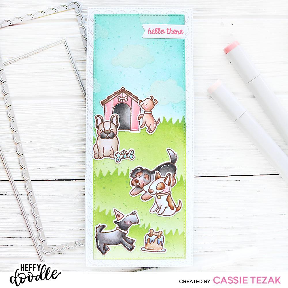 A collection of 14 dies that coordinate with the Who Let The Dogs Out Stamps, HFD0300. Includes dies for all five dog images as well as the dog house, paw prints, fence, bone shaped gift, party hat, doggy birthday cake and woof speech bubble images.