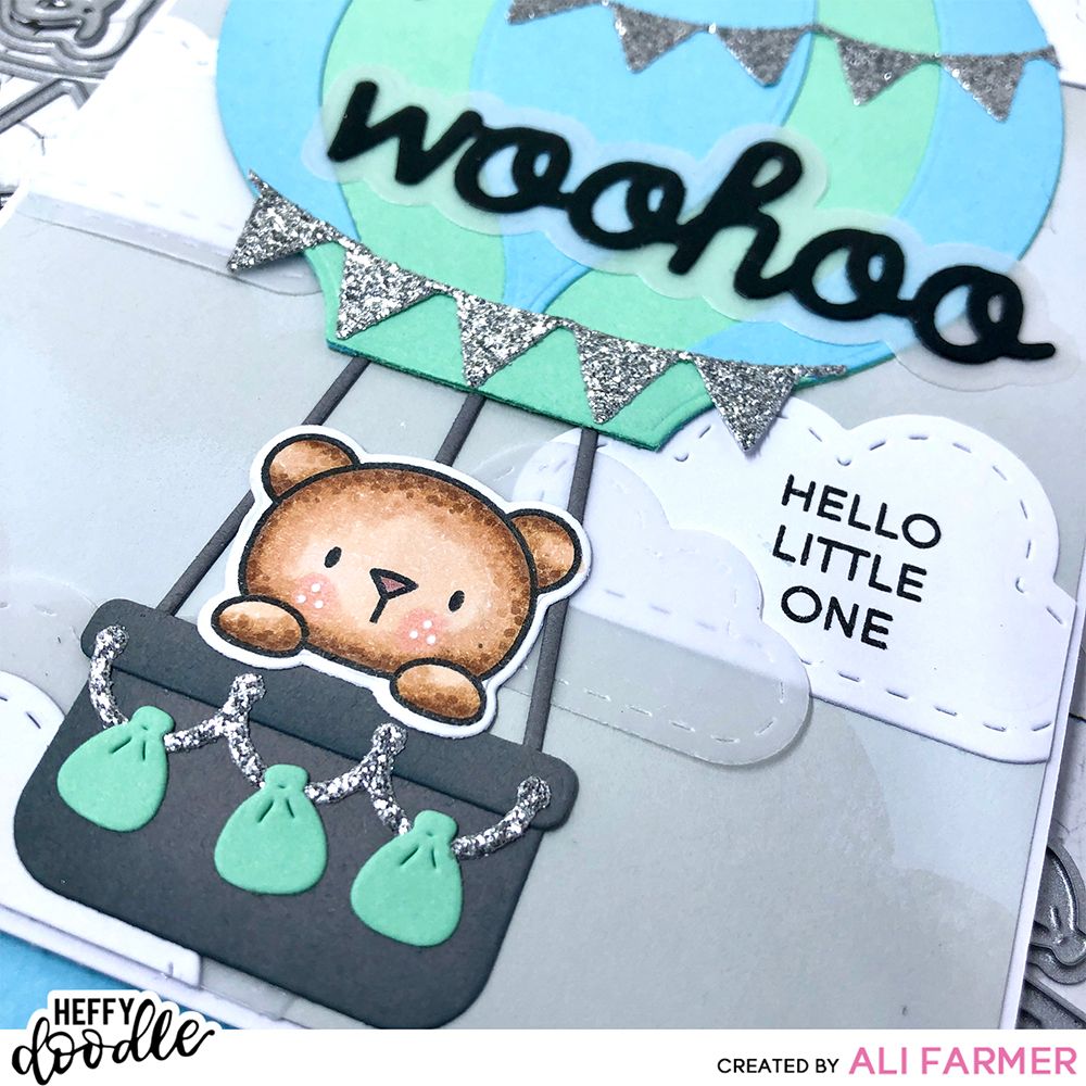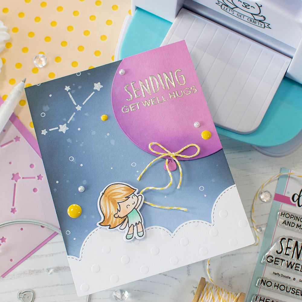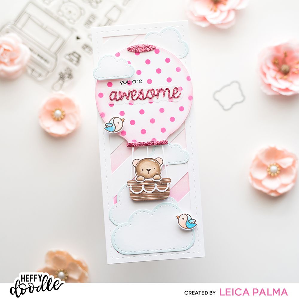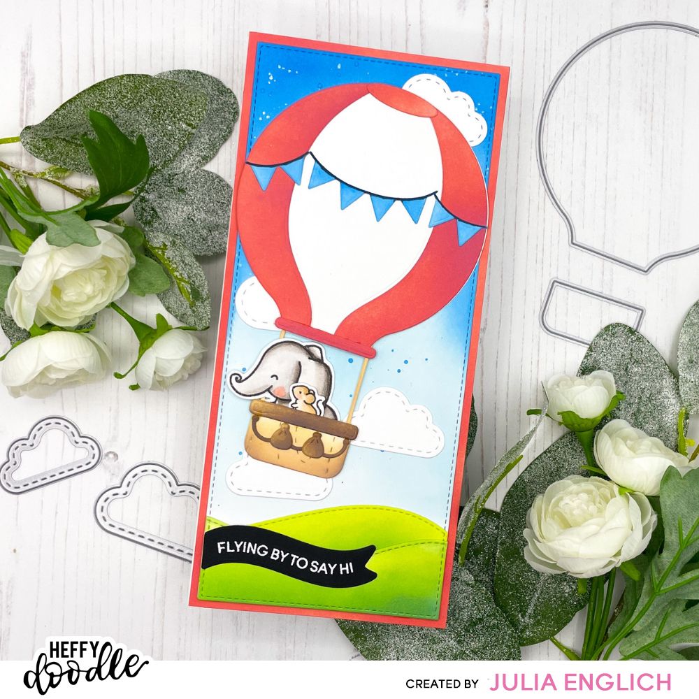 You are sure to get carried away by the super fun Hot Air Balloon die set! A set of 13 dies that can be assembled to create a hot air balloon that will fit onto A2 cards and slimline cards. Use the large die to cut a base panel, then trim down other base panels to create layered wedges for your balloon. The set also includes ropes, a basket, sandbags, and dies to create your own bunting banner. You can also use the large balloon die with the sandbag die to create a floating balloon effect on your cards.