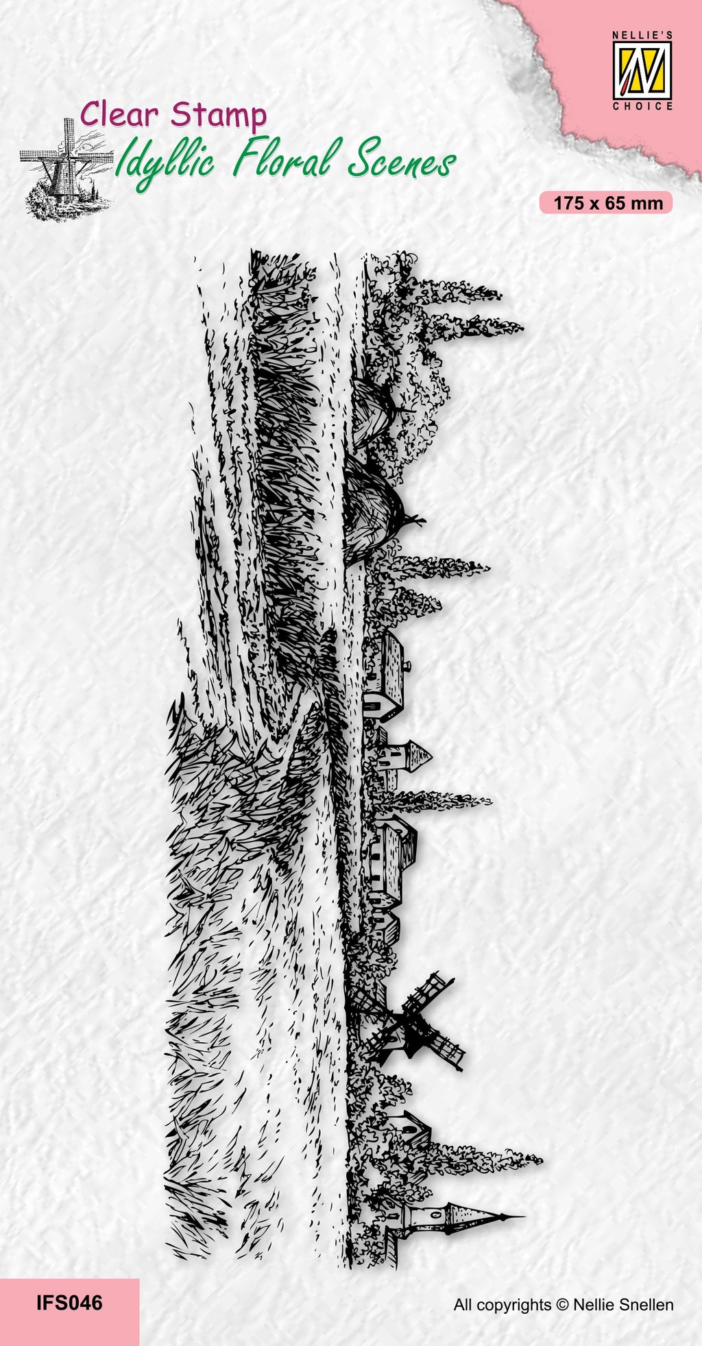 Nellie's Choice Clear Stamp Idyllic Floral Scene Slim Line - A Village In Those Days