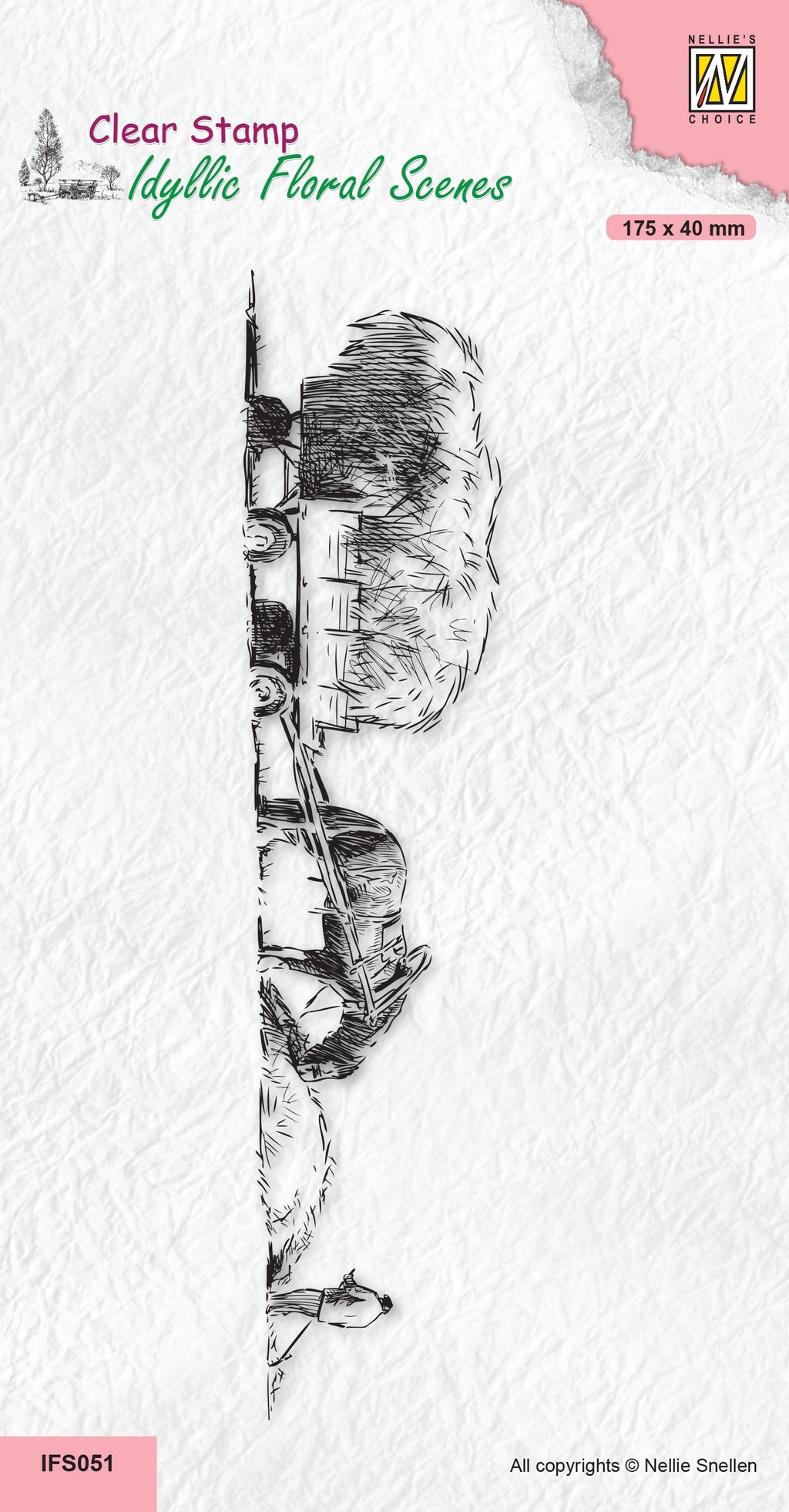 Nellie's Choice Clear Stamp Idyllic Floral Scene Slimline - Hay Time