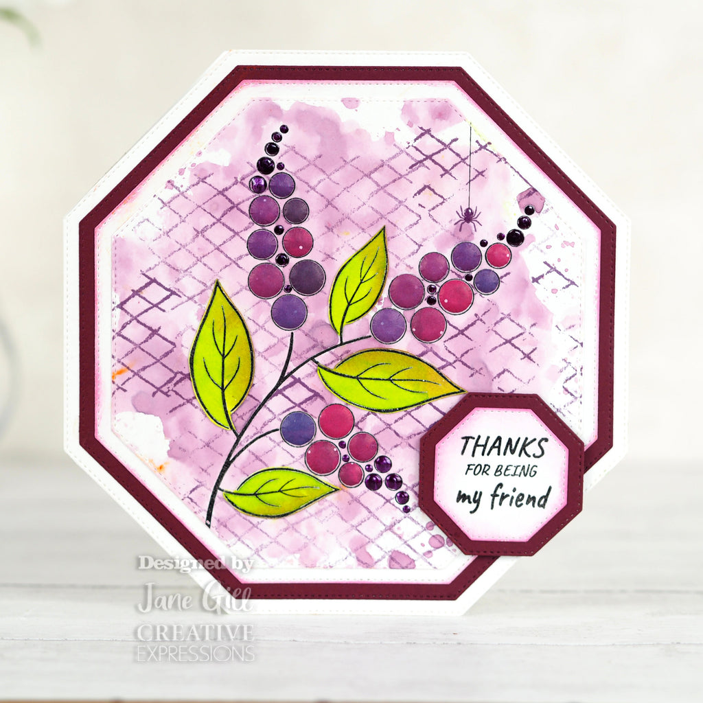 Ellie is an elegant floral stamp in Jane’s signature Bubble style and includes 1 flower and sentiments "Thanks or being", "YOU", "my friend" and "there for me". The bubble stamp can be combined with the Bubble Floral Tops stamps set (JGS799) and the Bubble Craft Die (CEDJG001) shape this with embossing tools and Shaping Pad (WW2984). Just colour with your favourite medium. Ready to mount on an acrylic block the stamps can be used with ink pads, paint, or used with pigment and embossing powder. They are suitable for paper fabric, or any other surface depending on the ink choice. Just carefully peel the stamp from the carrier sheet and place on an acrylic block or stamping platform. High quality polymer stamp gives an excellent image. Designed and made in the UK. Set size 4 x 6 inches.