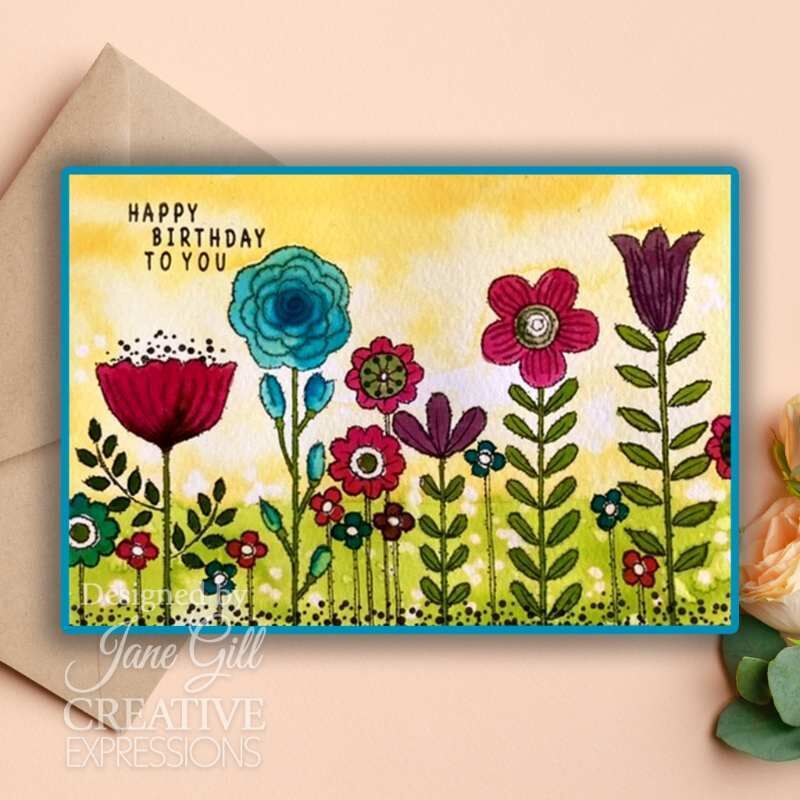 This Flower Stems clear stamp set is a fun addition to Jane’s Bubble collection. It can be combined with Janes range of Bubble Craft Dies. The stamps would be perfect for cards and scrapbook pages as well as mixed media or fun décor projects. Ready to mount on an acrylic block the stamps can be used with ink pads, paint, or used with pigment ink and embossing powder. They are suitable for use on paper, fabric, or any other surface depending on the ink choice. Clean your stamps with a wipe, damp cloth or under warm running water depending on the medium you use.