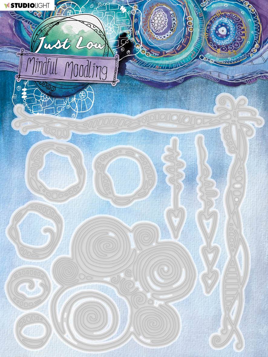Everybody doodles at some point. The results relate to your mood and circumstances. That’s where the idea came from: Mood + Doodling = Moodling. But instead of aimlessly doing something, the word ‘Mindful’ was added to it so it creates a purpose: the term ‘Mindful Moodling’ was born! The purpose of Mindful Moodling is to be creative, build confindence and allow development while taking some time out.  This cutting die set includes abstract shapes and will make great additions to cards, scrapbook layouts and journal pages for any occasion.