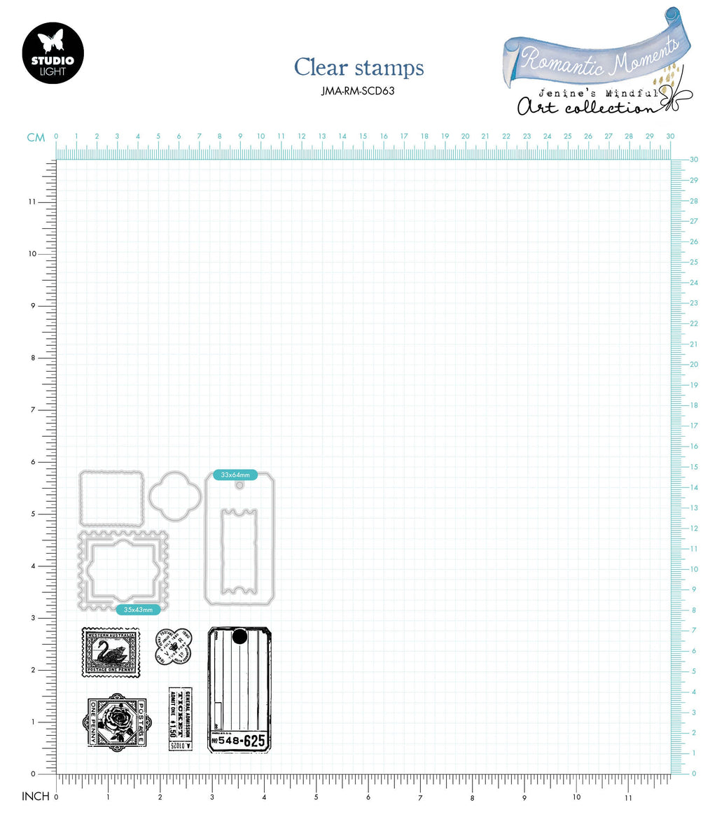 JMA Stamp & Cutting Die Postage Stamps Romantic Moments 99x142x3mm 11 PC nr.63