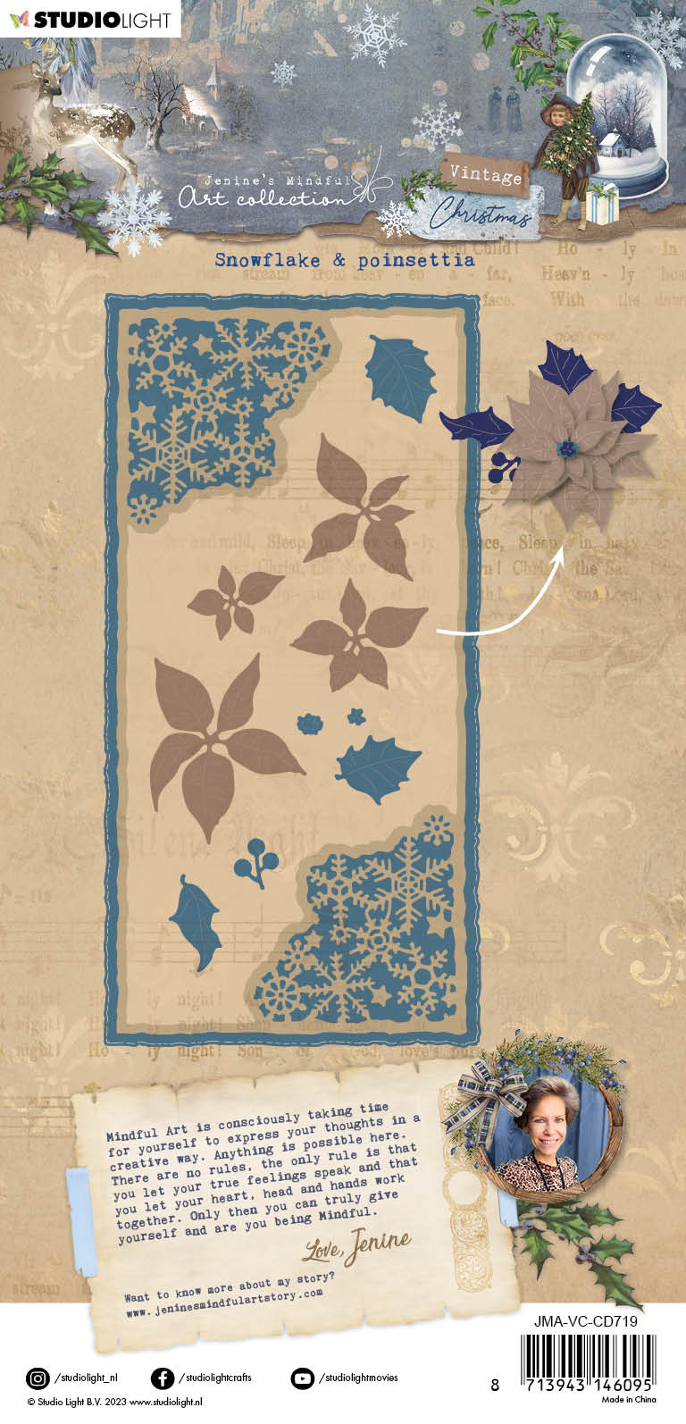 JMA Cutting Die Snowflake & Poinsettia Vintage Christmas 105x210x1mm 15 PC nr.719