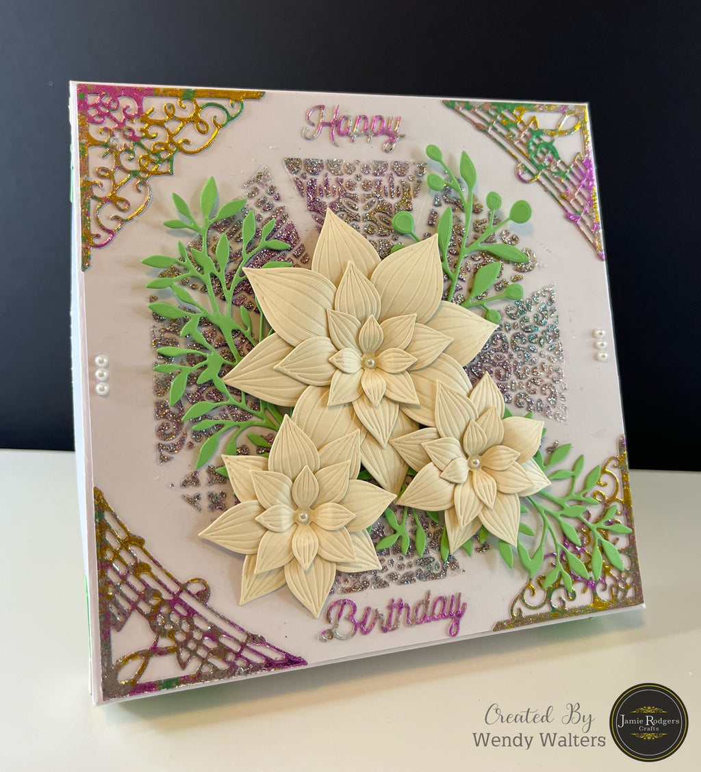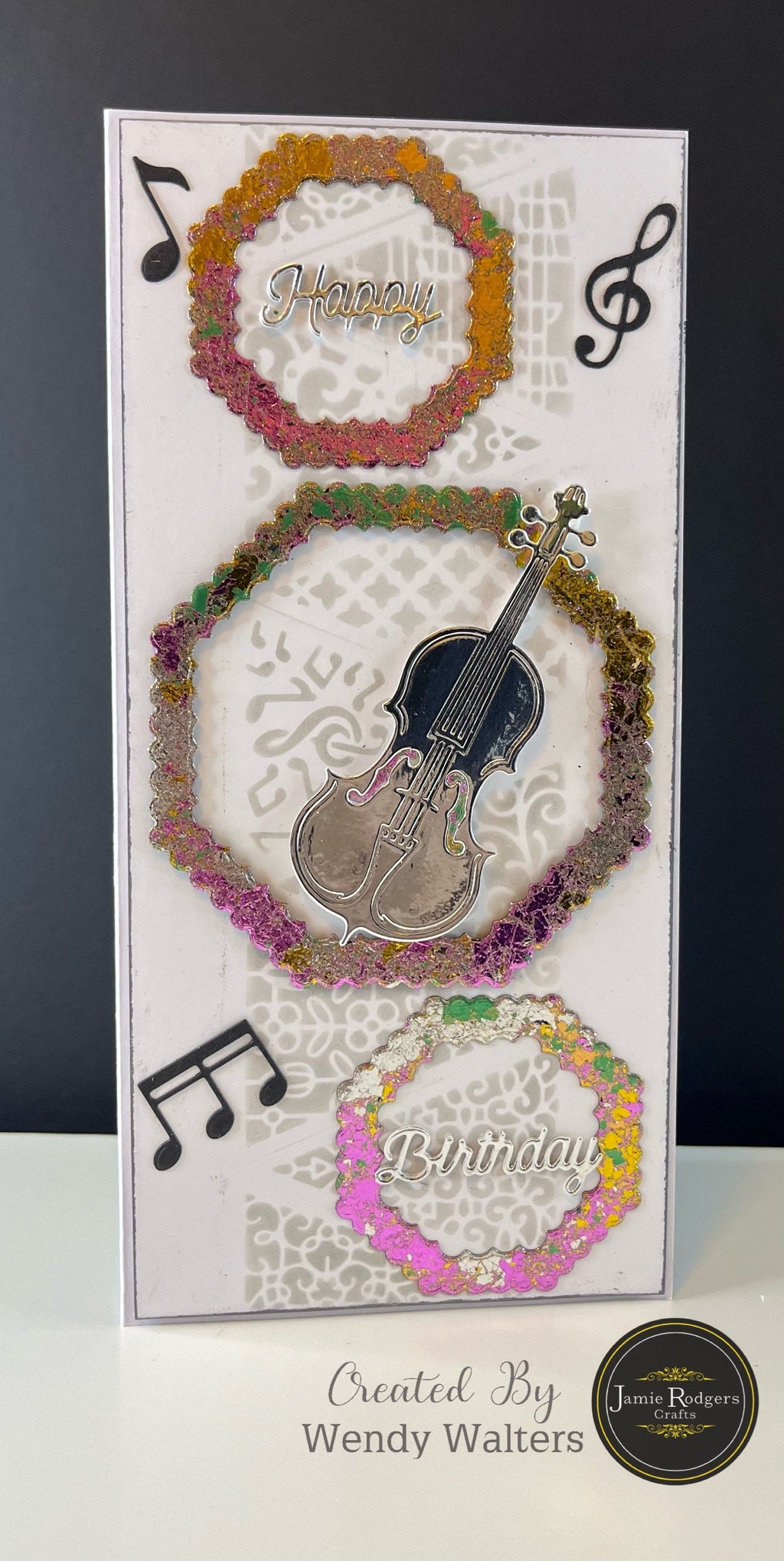 This beautiful 7"x7"stencil has a floral and musical theme. The set offers many uses for backgrounds on cards, scrapbook pages and other craft projects, using inks, paints, polishes and other mediums. This stencil also co-ordinates with Jamie Rodgers Octagon Kaleidoscope Segments Die (jrdc0092) available to purchase separately.