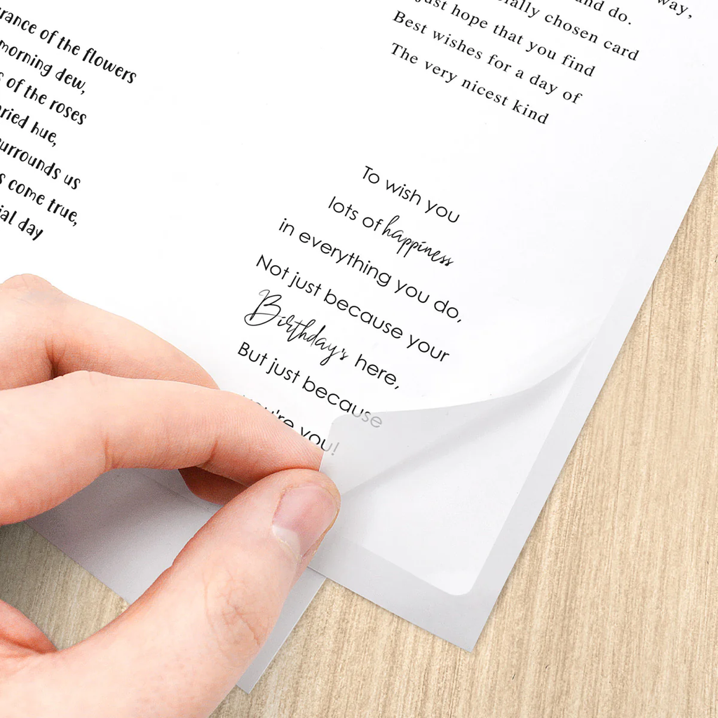 Peelables can be used on the front or inside of your project. The verses are suitable for occasions such as Birthdays, Celebrations, Weddings and much more.