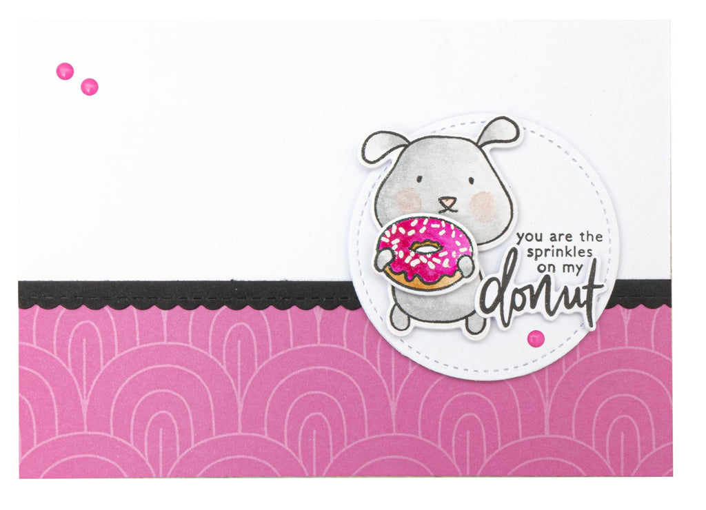 Missees’ Pets: They are sweet and they love anything sweet! With this Donut Dog stamp & die set you can give them something yummy to hold in their hands like a donut or a cupcake.  The collection contains Donut Dog, Sweet Cat and Coffee Bunny and an additional Sweet Table set.