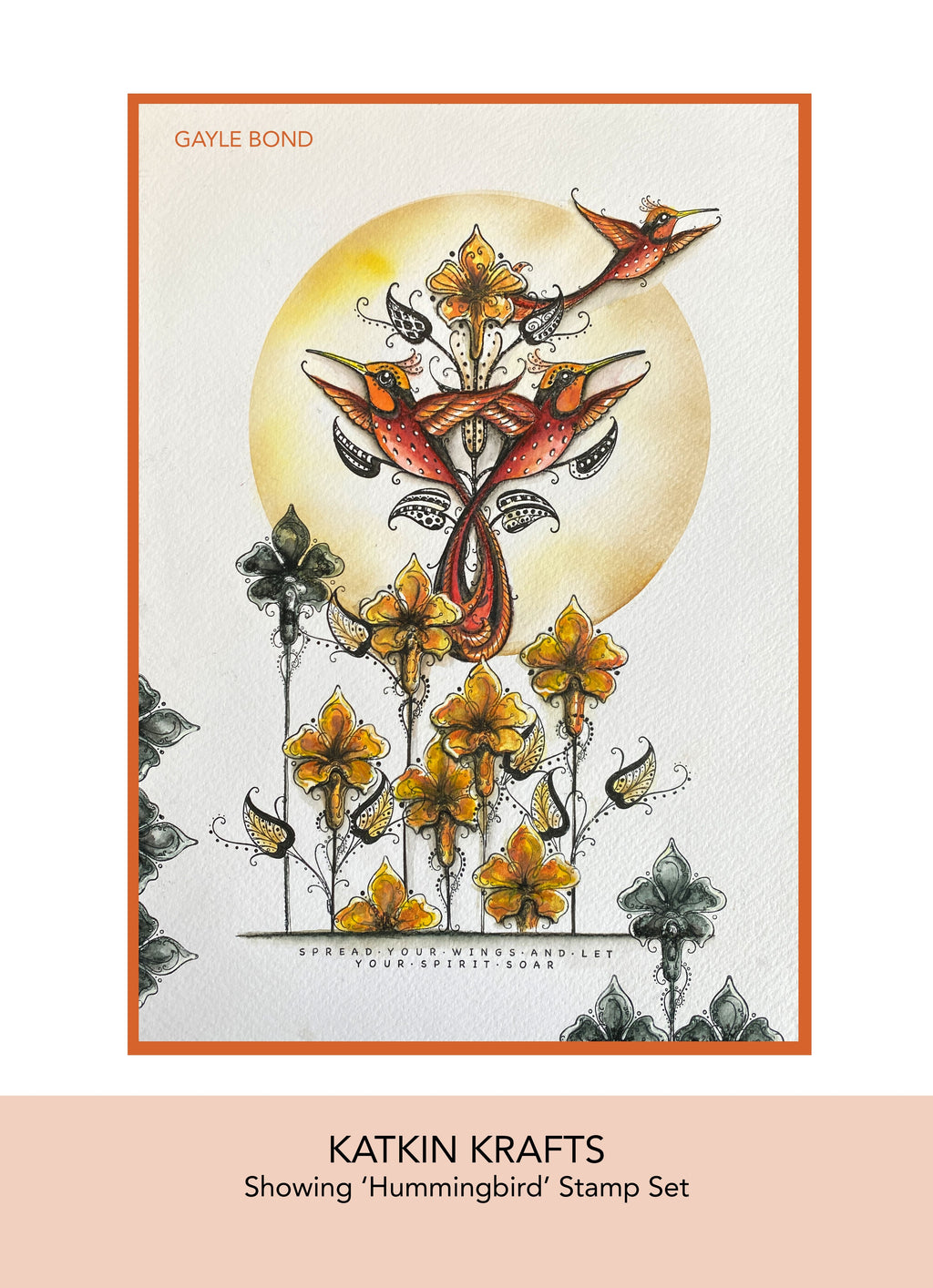 Katkin Krafts Hummingbird 6 in x 8 in Clear Stamp Set