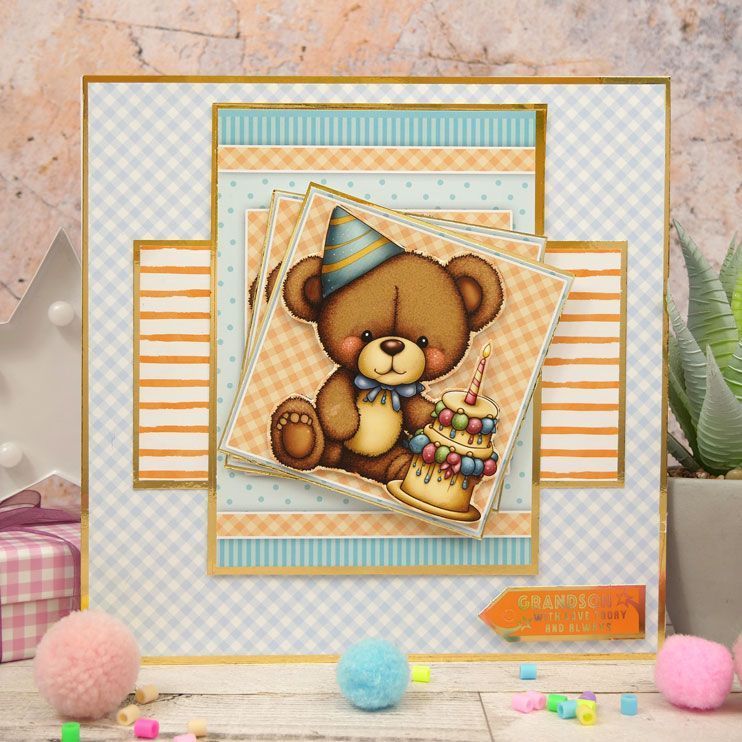Certain pages also incorporate special and playful sentiments including party poppers surrounding ‘Time to Party!’, a superhero hoping you ‘Have a Super Day!’, a lion, elephant and giraffe under ‘Party Animal!’ bunting, jars of pick ‘n’ mix ‘Wishing You a Super Sweet Birthday’, and for the men a bouquet of hammers, saws and wrenches announcing ‘Happy Birthday Tool You!’ amongst others.