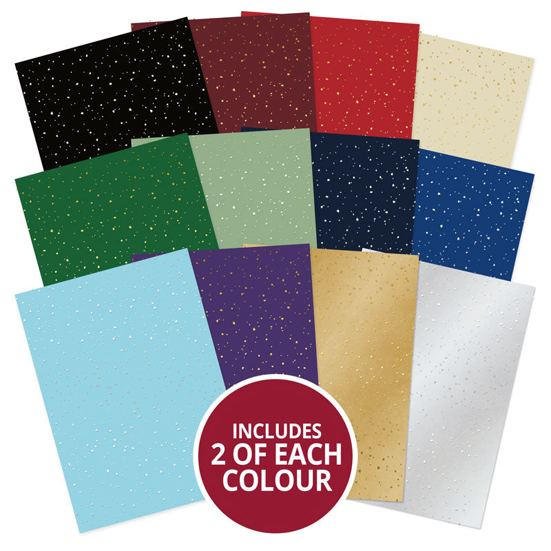There are 24 sheets of 350gsm Adorable Scorable A4 cardstock, 12 different colours, each foiled in both rich gold & stunning silver. The 12 Adorable Scorable colours have been specially selected from Hunkydory's 2025 Adorable Scorable core colours to co-ordinate with their 2025 Christmas papercraft collections including the Blockbuster.