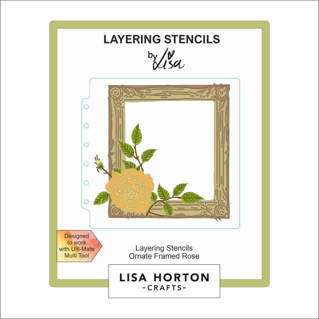Lisa Horton Crafts Ornate Framed Rose 6x6 Layering Stencils